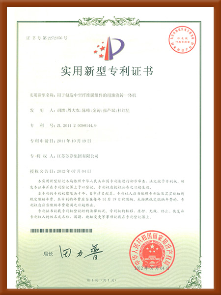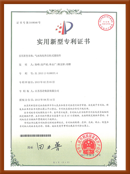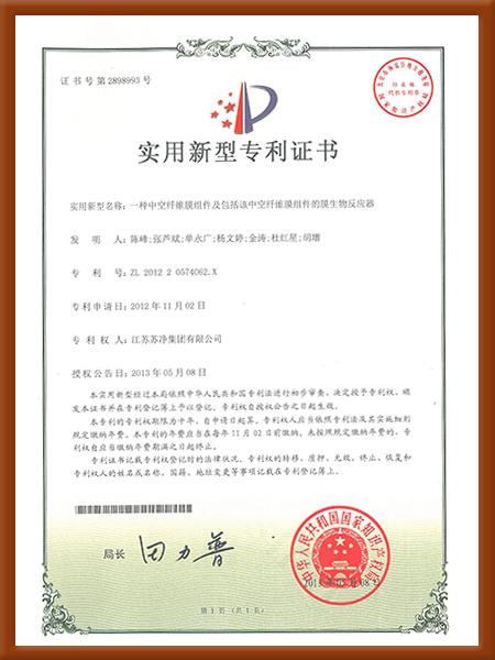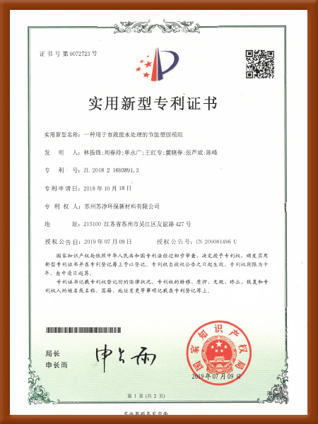 實用新型-2018一種柱式MBR膜組架-專利證書